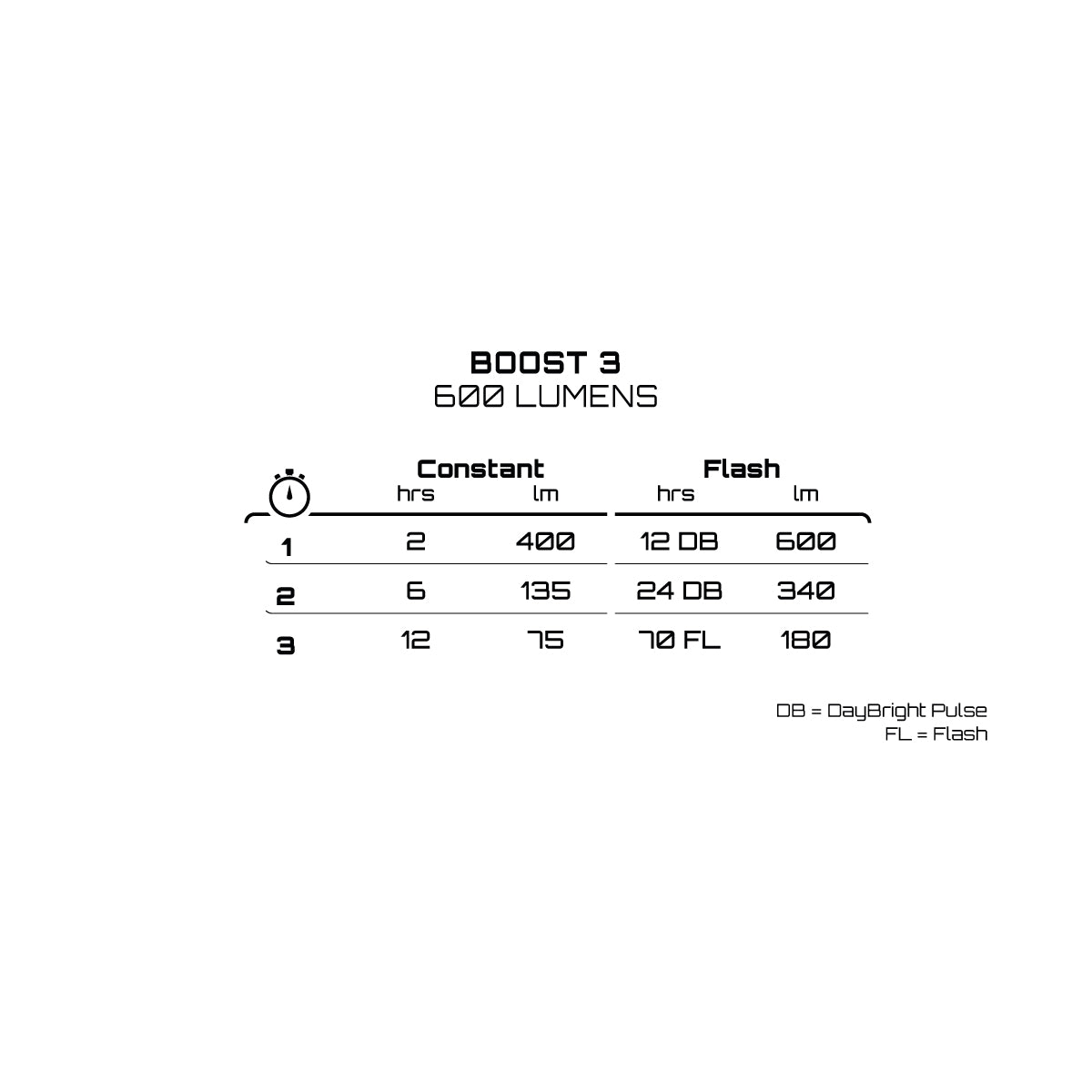 The Boost 3 now delivers a maximum flashing output of 600 lumens and a constant output of 400 lumens, making it brighter and more effective than ever. With increased battery capacity, it achieves up to 70 hours of runtime in its flash mode. This enhanced performance, combined with our precision-engineered lens system and DayBright pulse pattern, ensures you remain highly visible in every riding scenario.