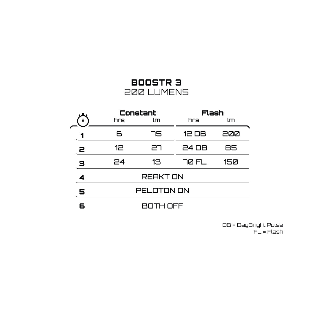 With an upgraded output of 200 lumens in flash mode and 75 lumens in constant mode, the BoostR 3 is brighter and more effective than ever. A larger battery delivers up to 70 hours of runtime, ensuring reliable, long-lasting performance for daily commutes or multi-day adventures. Combined with a precision-engineered lens system and our signature DayBright pulse pattern, you remain highly visible in all riding conditions from busy streets to open roads.
