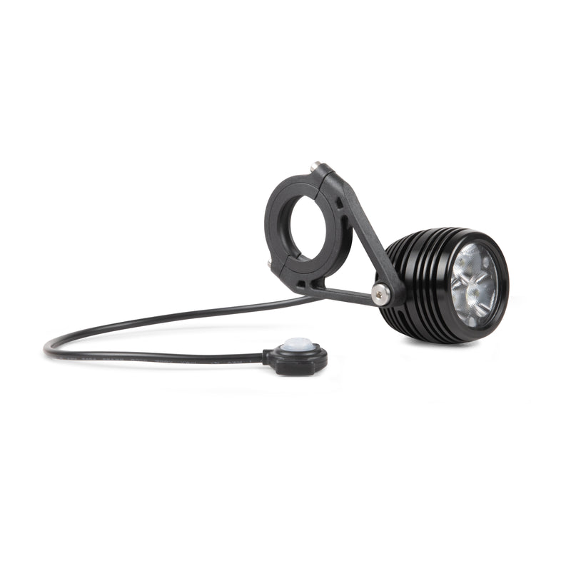 3 LED e-bike light, the Flex is our e-mtb orientated light with a possible output of up to 3300 lumens in a lightweight and compact unit. Powered via the battery/motor system, this allows you to do away with the traditional onboard battery system. The Flex utilises our REFLEX ++ technology for smarter battery management, and is fitted with wired remote for easy mode changes. Fitment is from a new single sided reinforced nylon bracket, this allows for central mounting position on the bike.