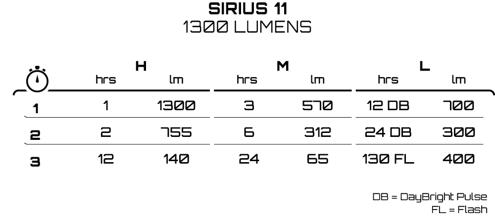 1300 Lumens | 1 - 130 Hour Runtime | 90g