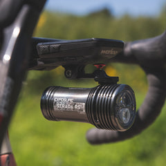 The RS, Road Sport, AKTiv features a Road-Specific Beam Pattern and an upgraded 1450 lumen output; once AKTiv is selected the light will sense oncoming light sources and auto dim when a vehicle is approaching, no button or thinking required. Also with the specific cut out to allow side illumination to ensure the rider is visible through 240° and graphics are positioned to remind that the Strada can be mounted either way up without a change to beam pattern or technology. There is also a remote switch included which allows the rider to take control if desired.